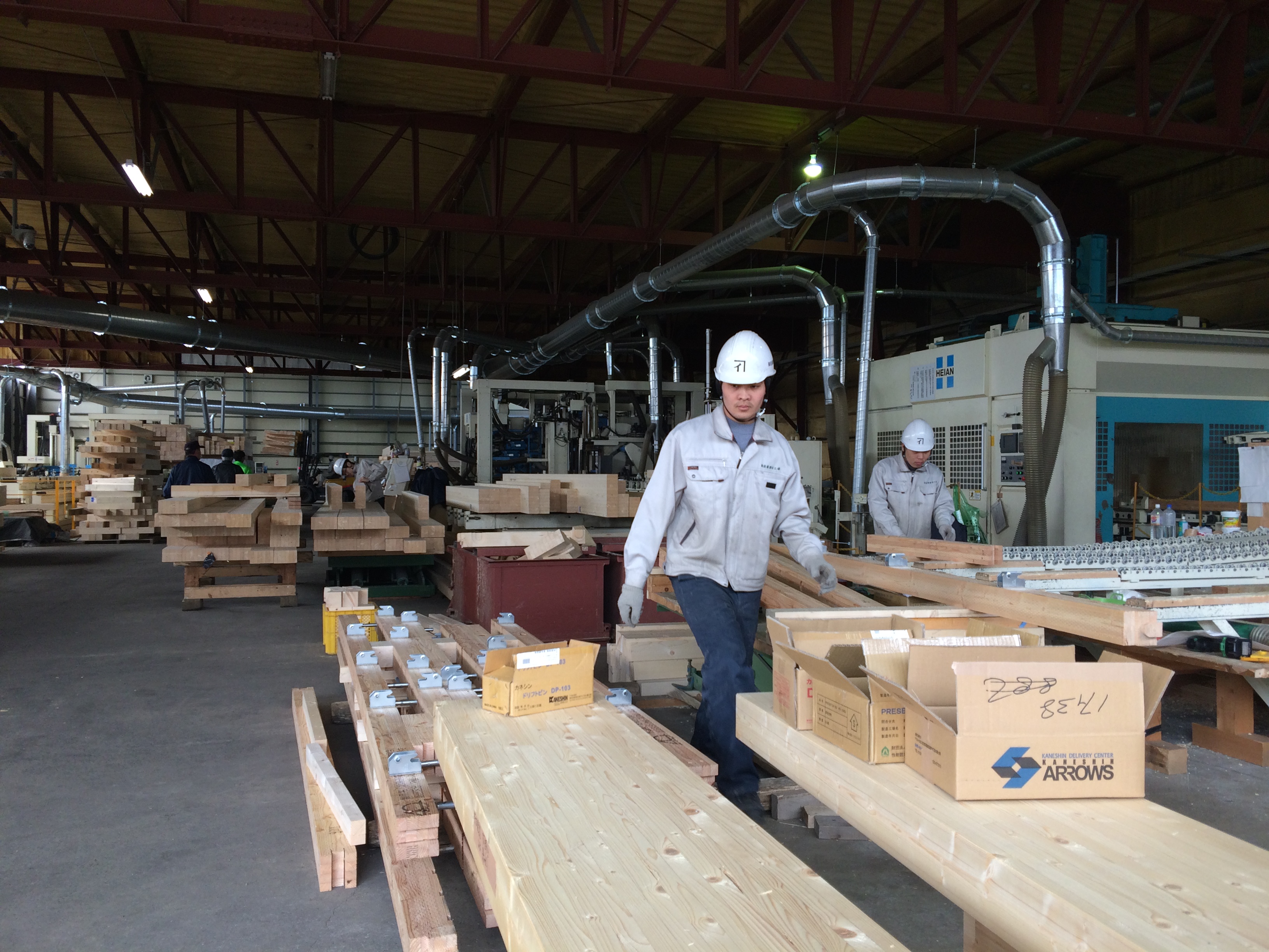 先日、住宅の柱や梁を加工するプレカット工場に行きました。