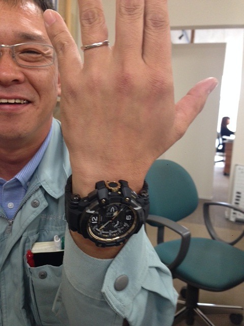 左手の指輪が眩しいくらい輝いております♪ちなみにGショックもかなり高価な腕時計と聞いております☆