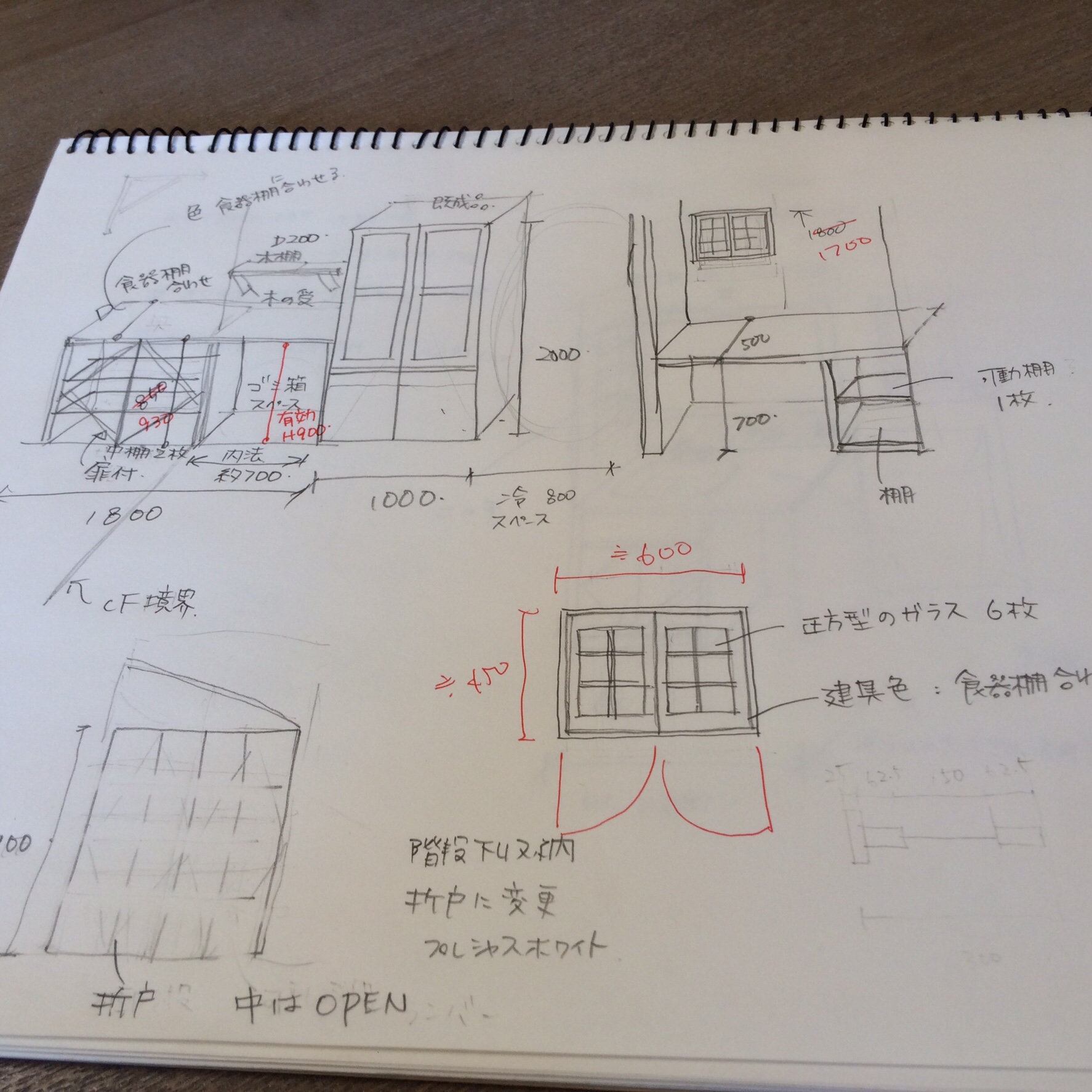 ざっくり描いて現場で寸法確認しながら詳細を決めていきます