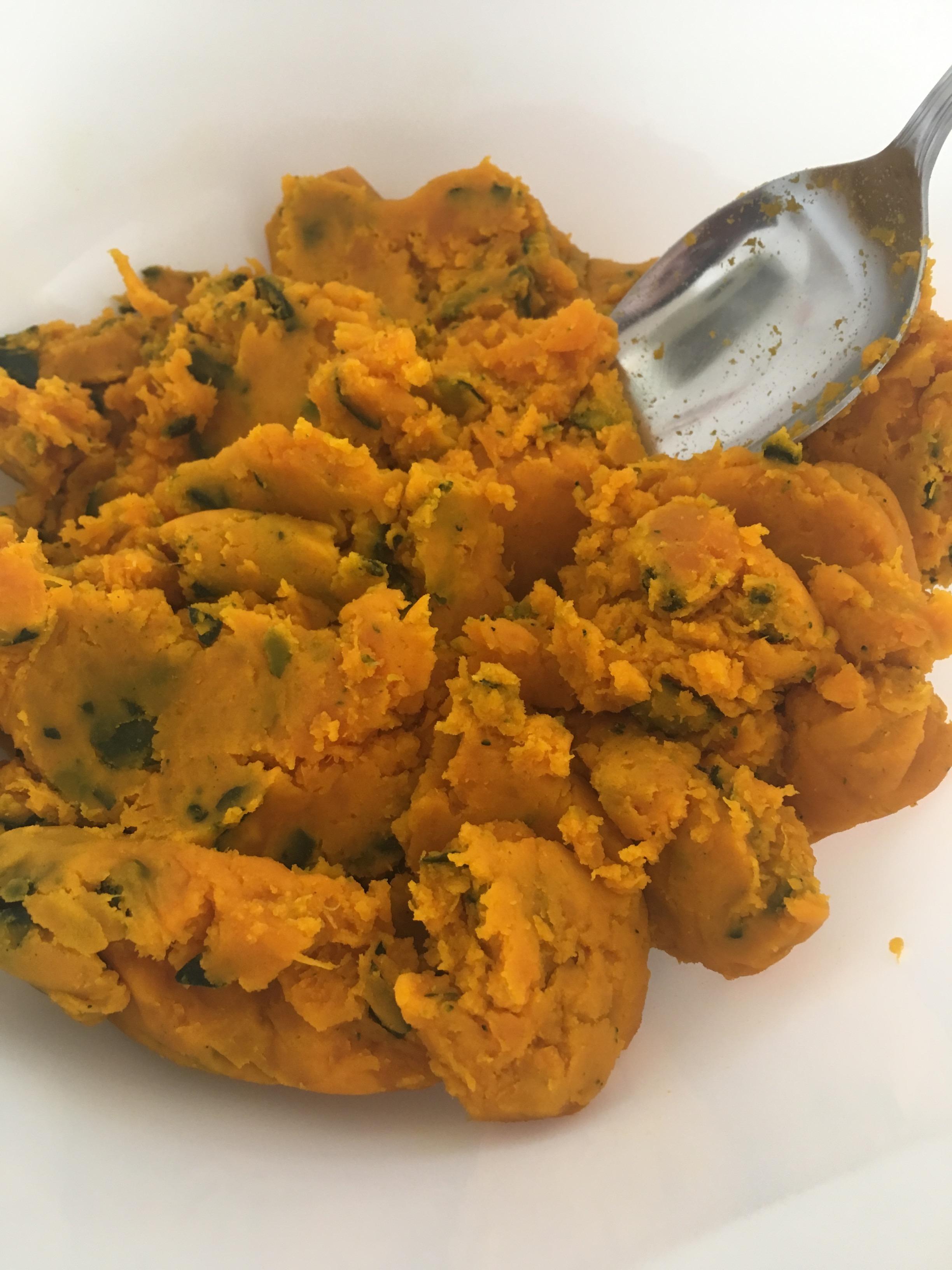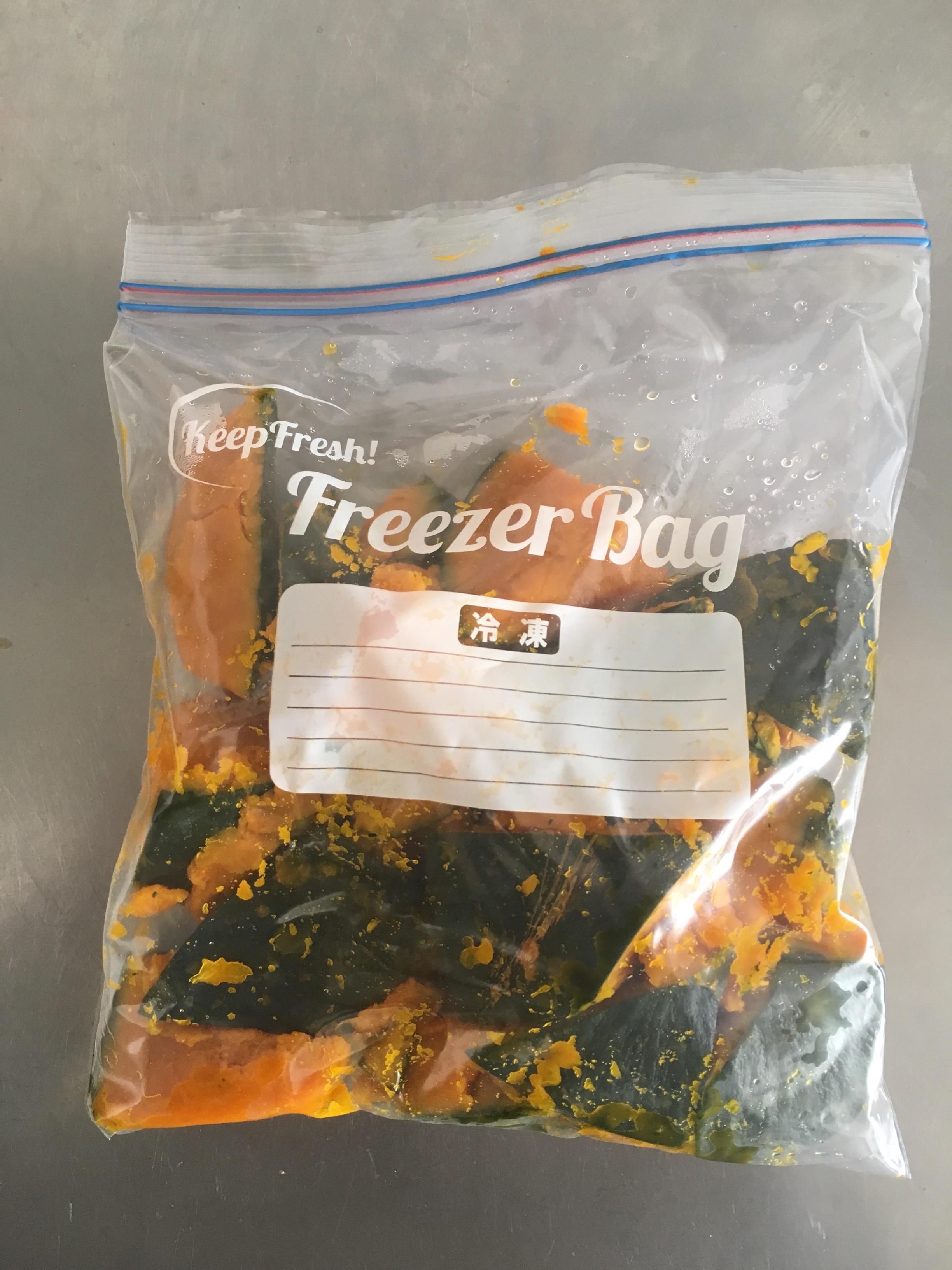 作り方としては、まず蒸かしたカボチャを袋に入れて