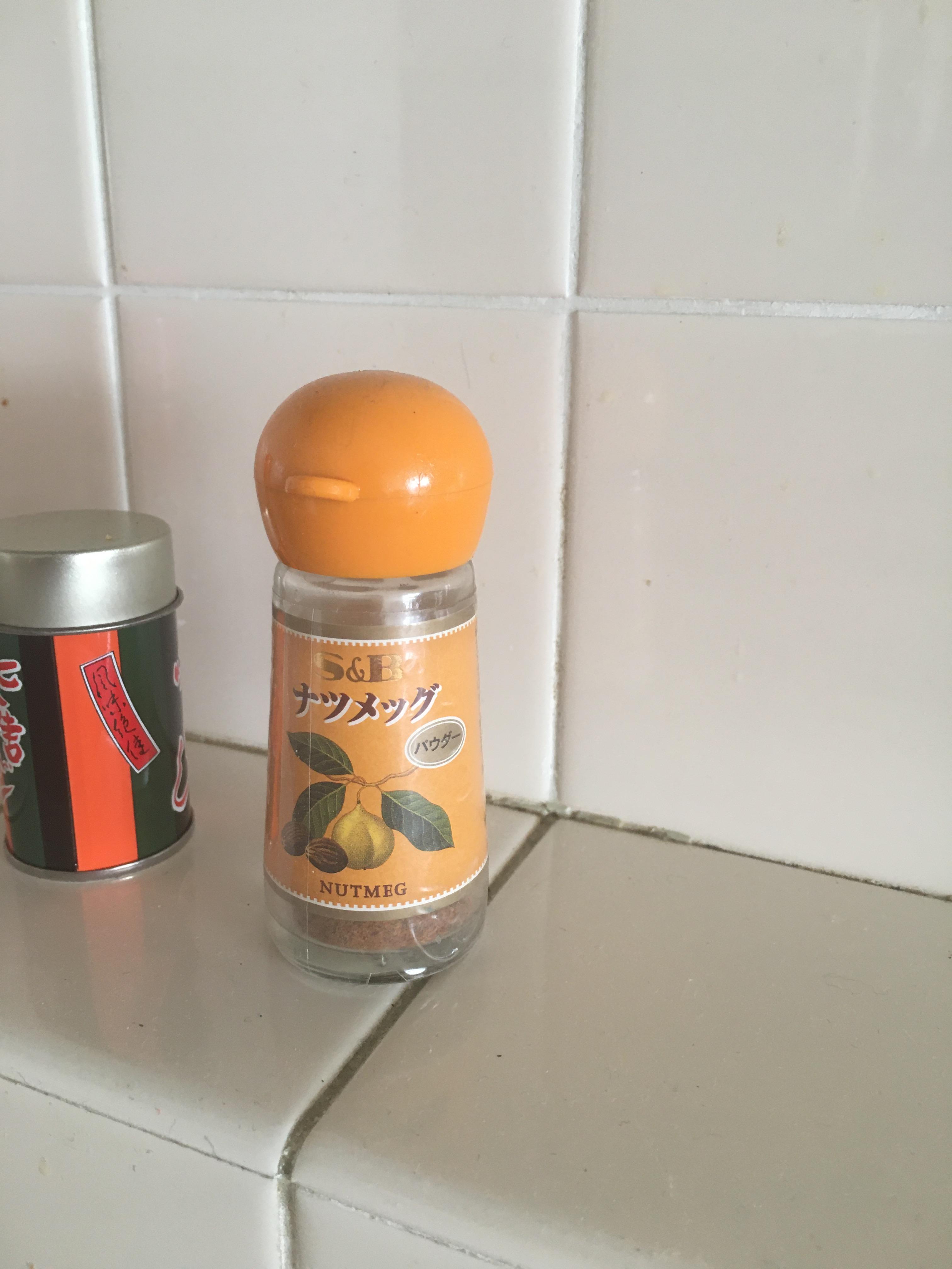 ナツメグの瓶が、使ってほしそうに、こちらをじっと見ている...