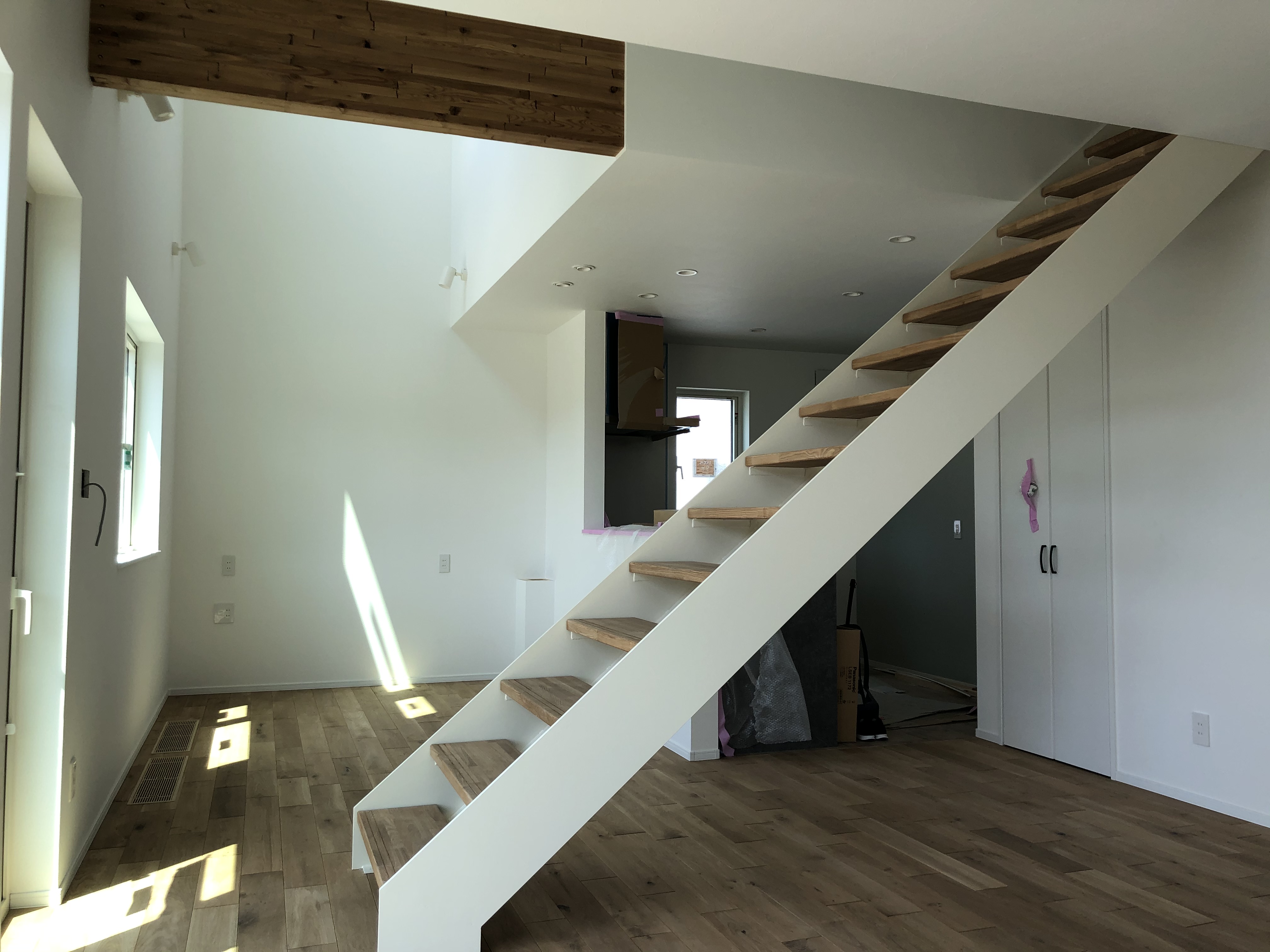 おうちの中央に鉄骨階段や吹抜けもあって、