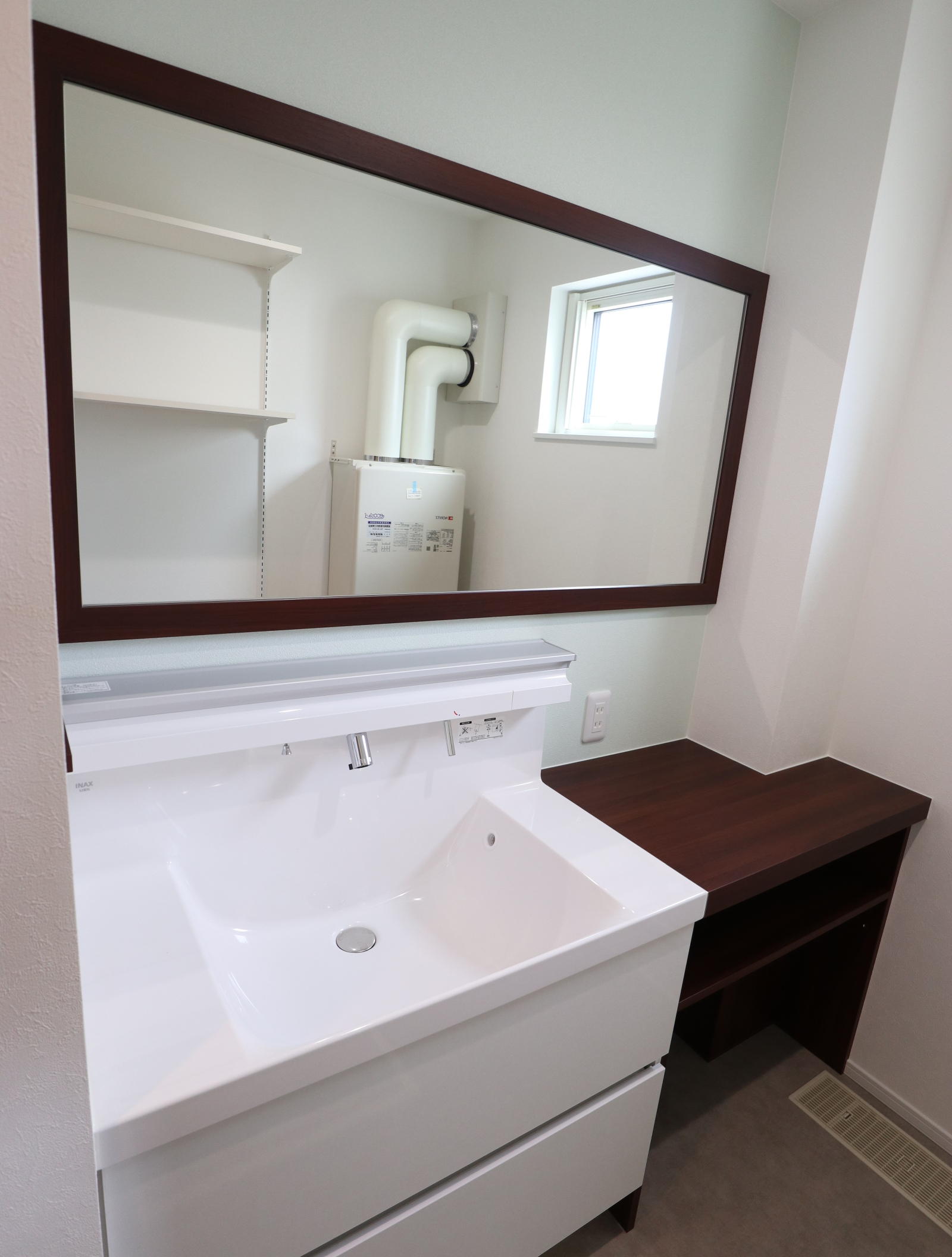 その次は使いやすさ抜群の洗面室です!造作の鏡が大きくて使いやすい^^