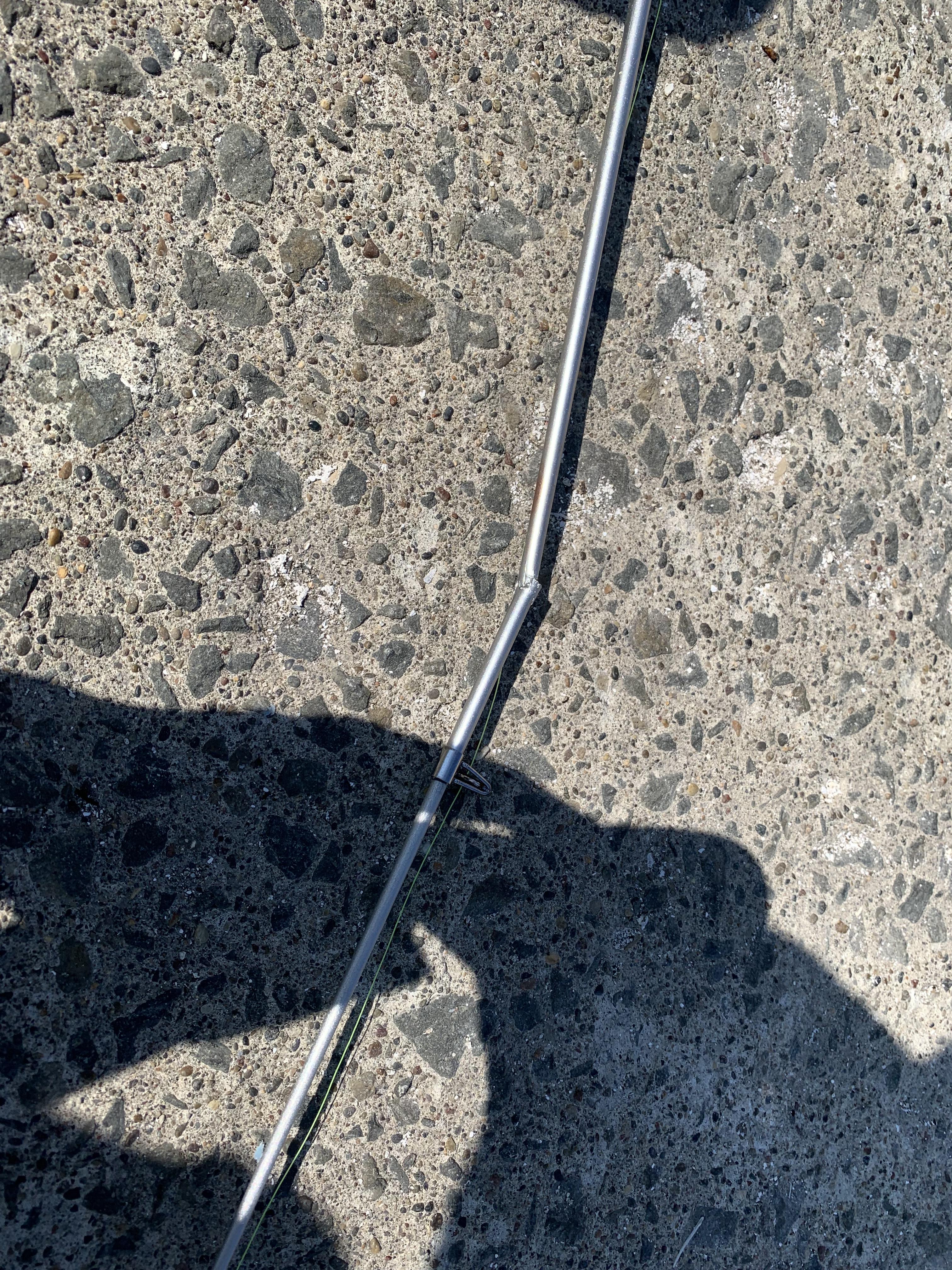 死闘の結果、爺ちゃんから買ってもらった大事な十束の剣が、魚の重さに耐えきれなかったのか、息子の釣り方が悪かったのか・・こんな姿に・・。