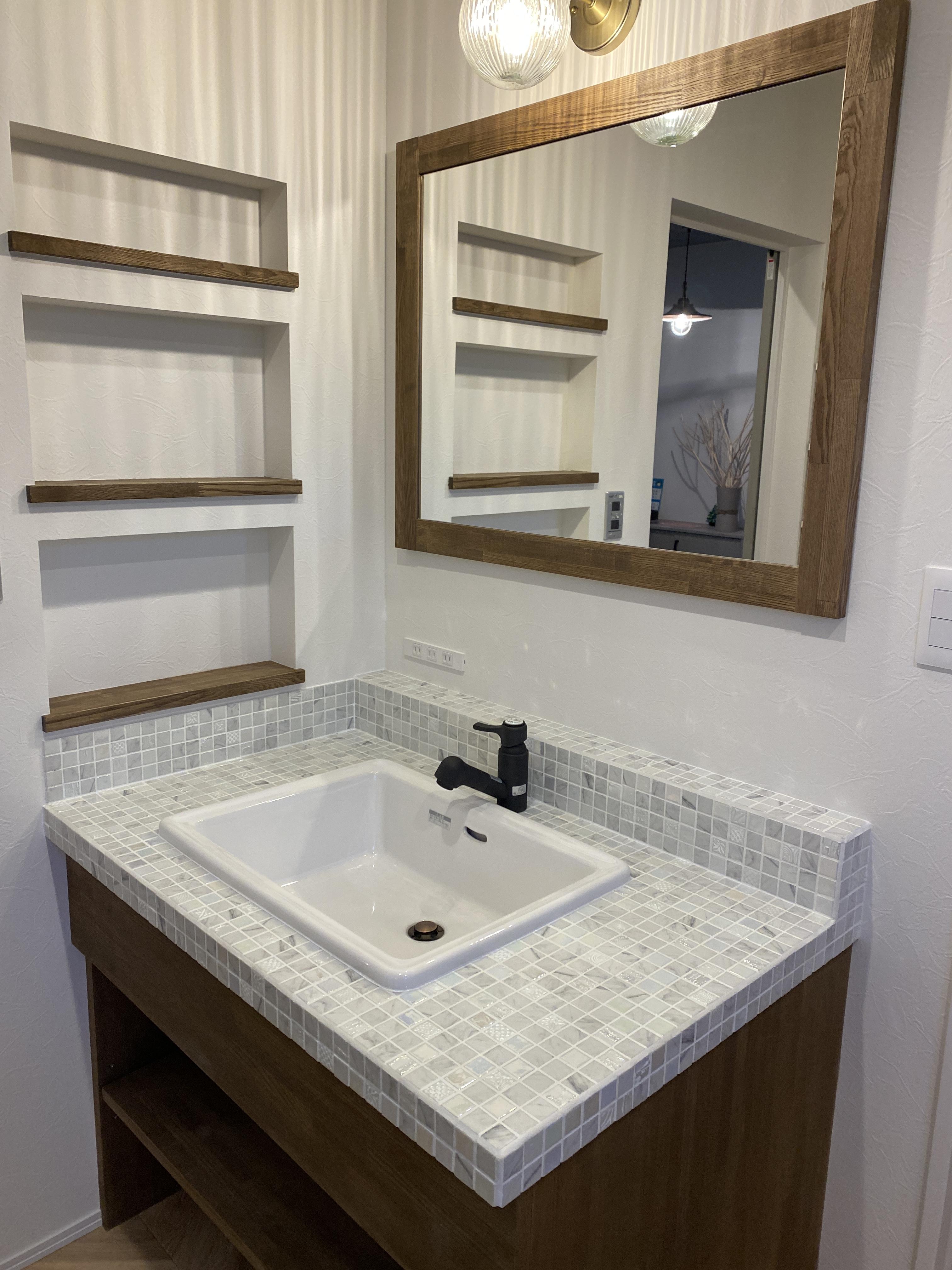 キッチンや造作洗面台のタイルもとってもおしゃれです♫