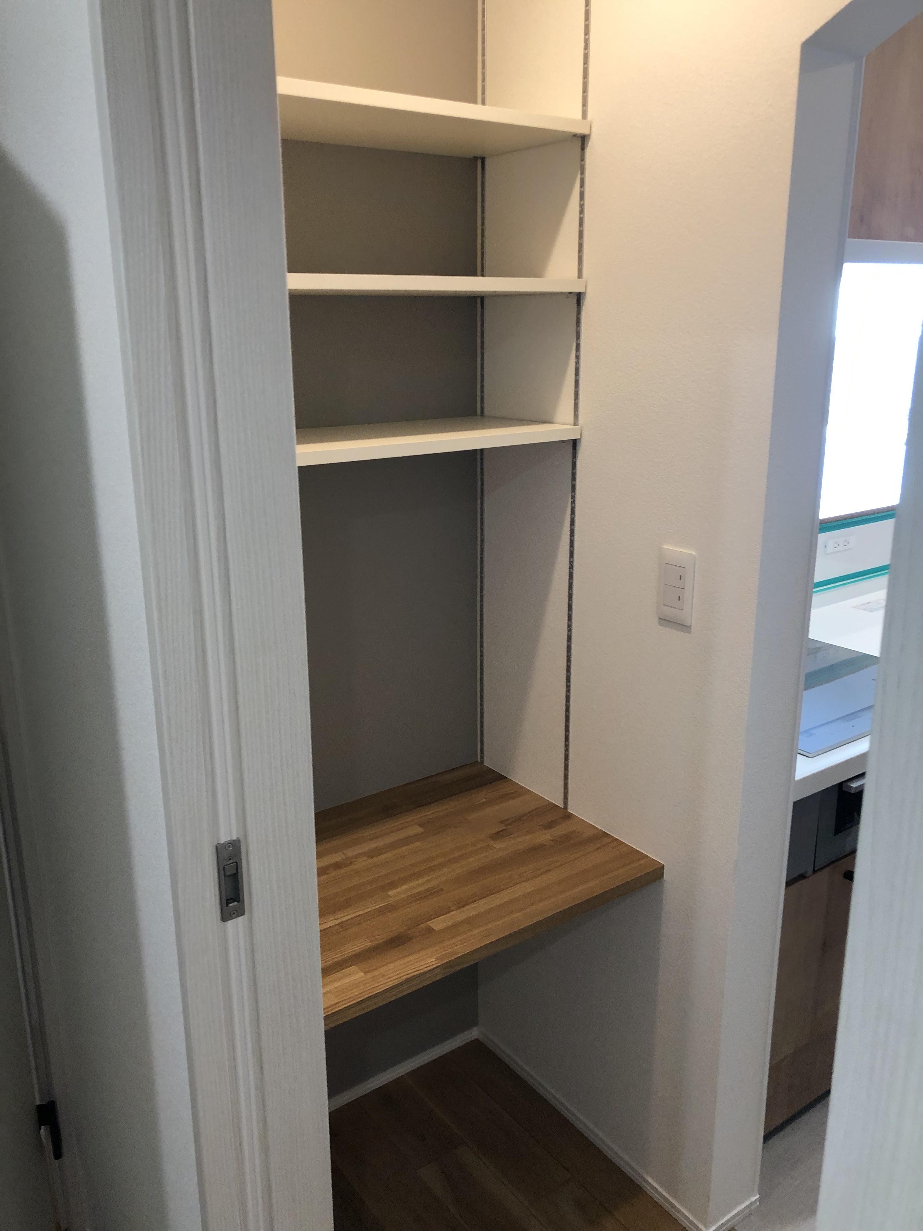 家事動線はそれだけじゃありません、キッチンの反対方向には奥様専用ミセスルームとパントリー。