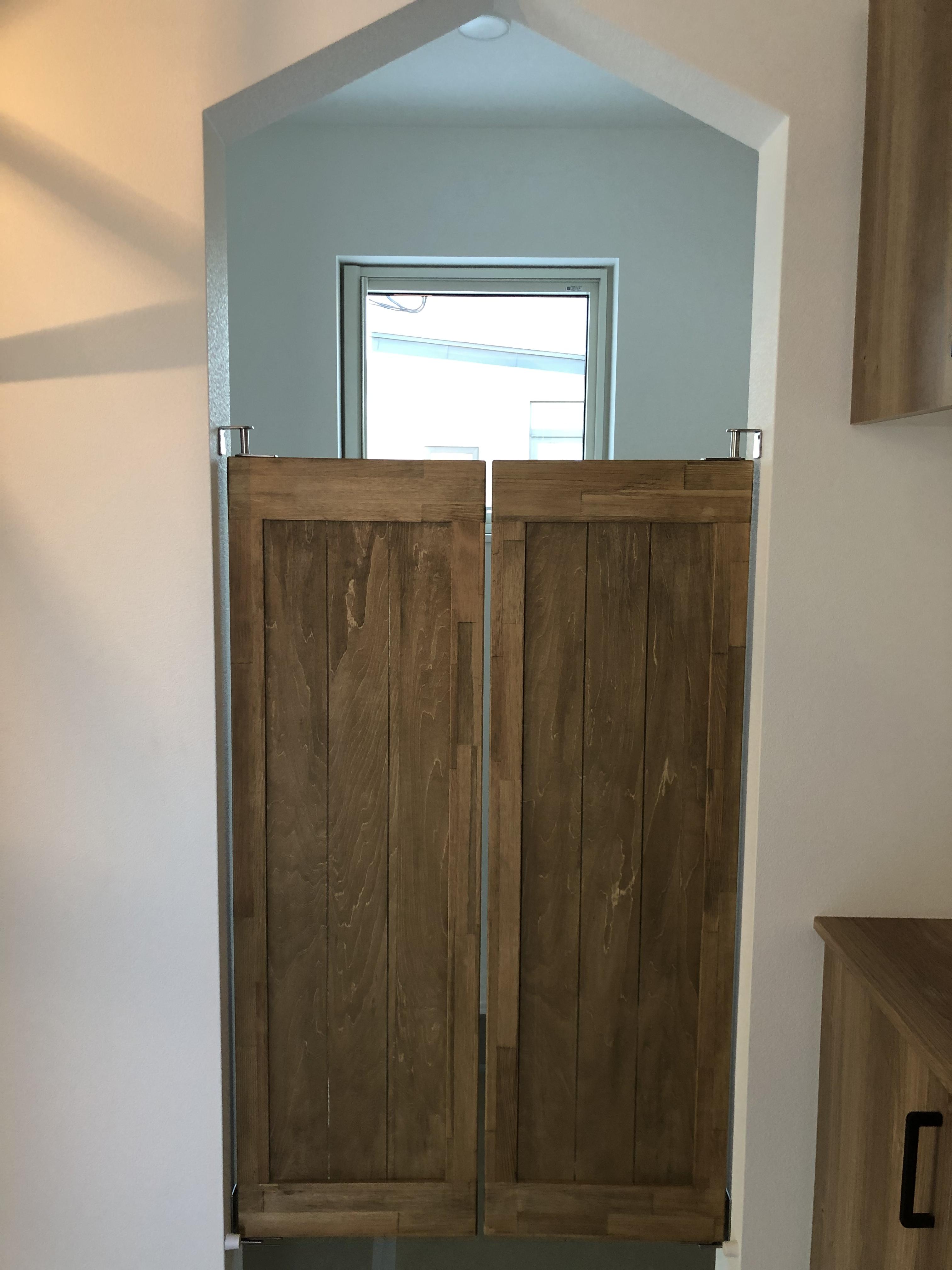 玄関扉をあけてすぐに造作でできたウエスタンドアがお出迎えです!