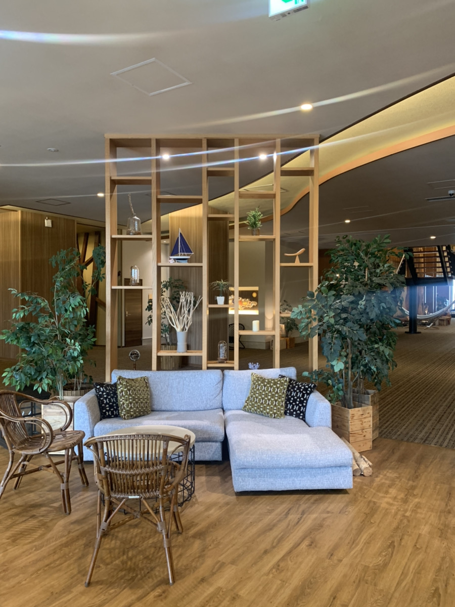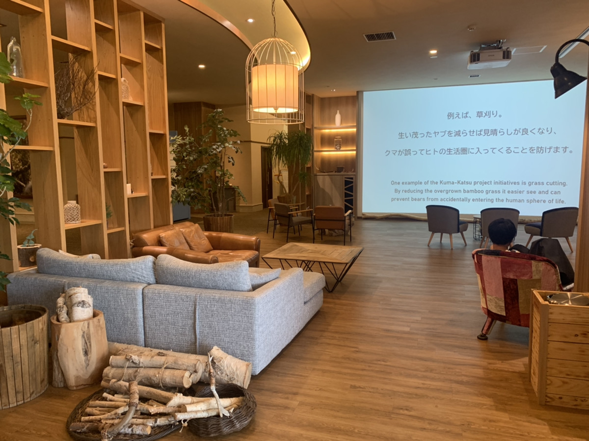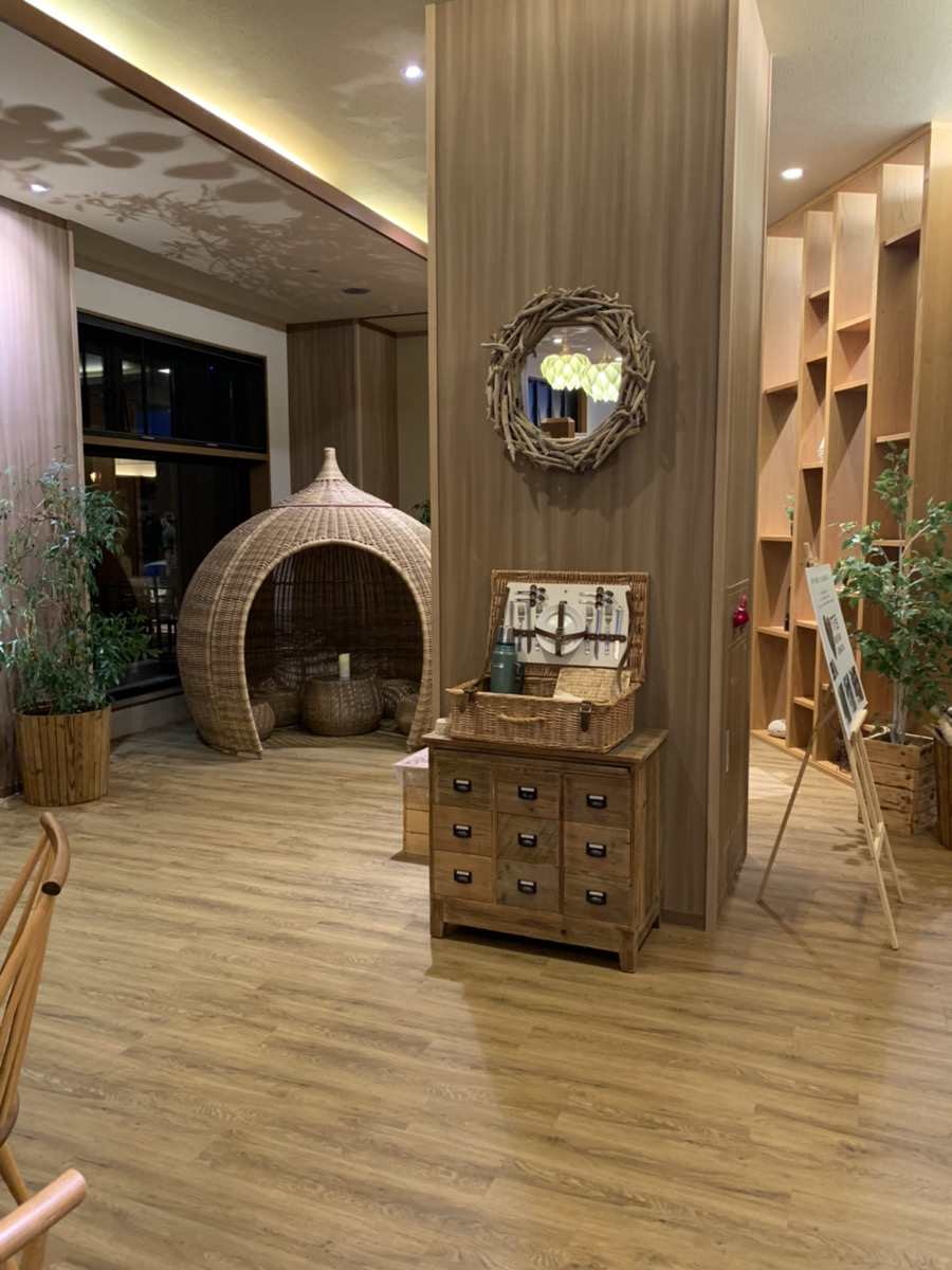 ロビーは高級そうなソファーが並び、木をふんだんに使った内装はとってもお洒落。