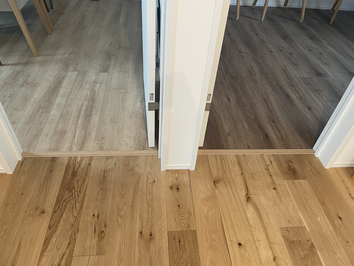 無垢とフローリングの比較や、フローリングの色味で実際に雰囲気の違いが見ることができます