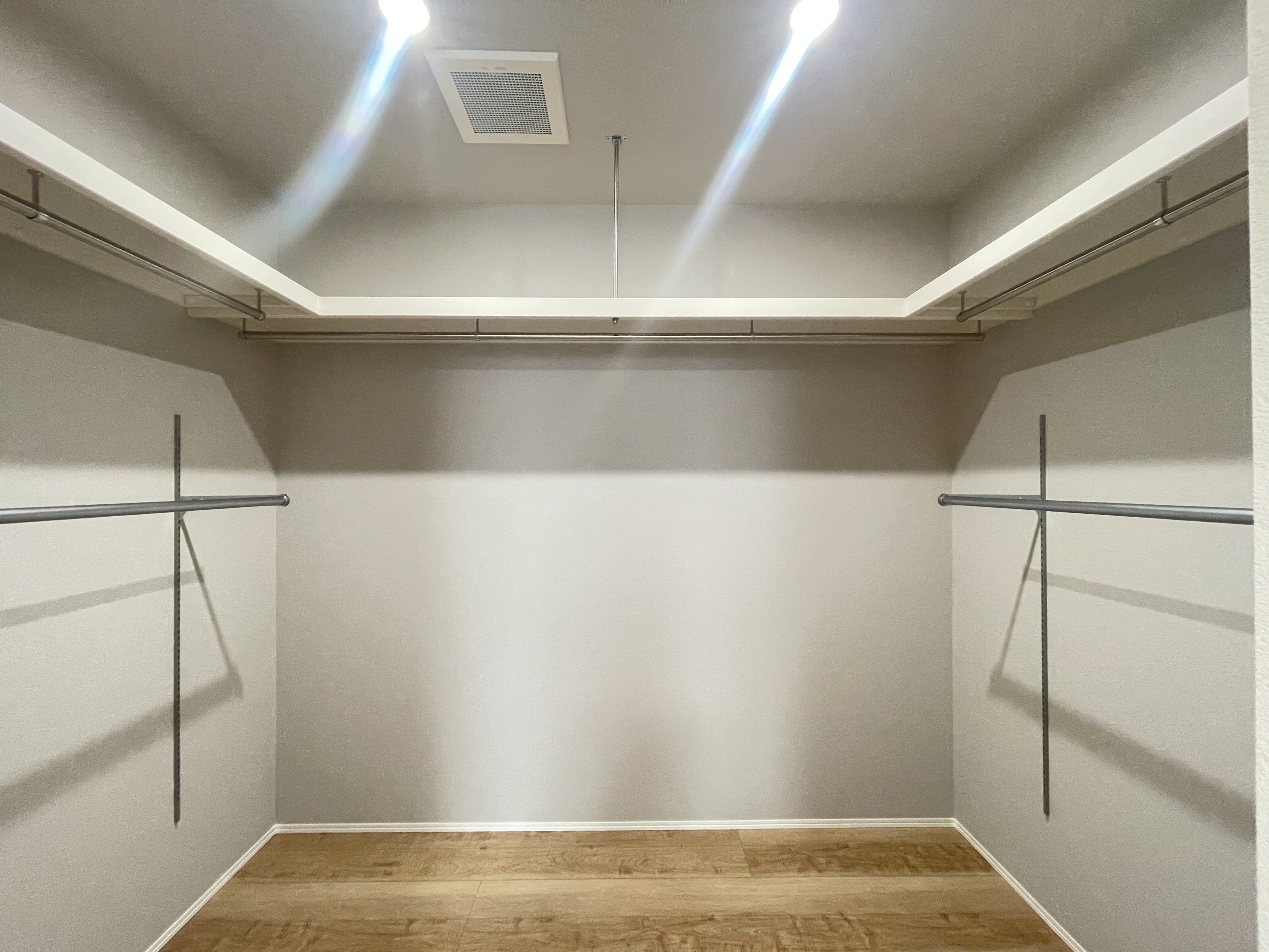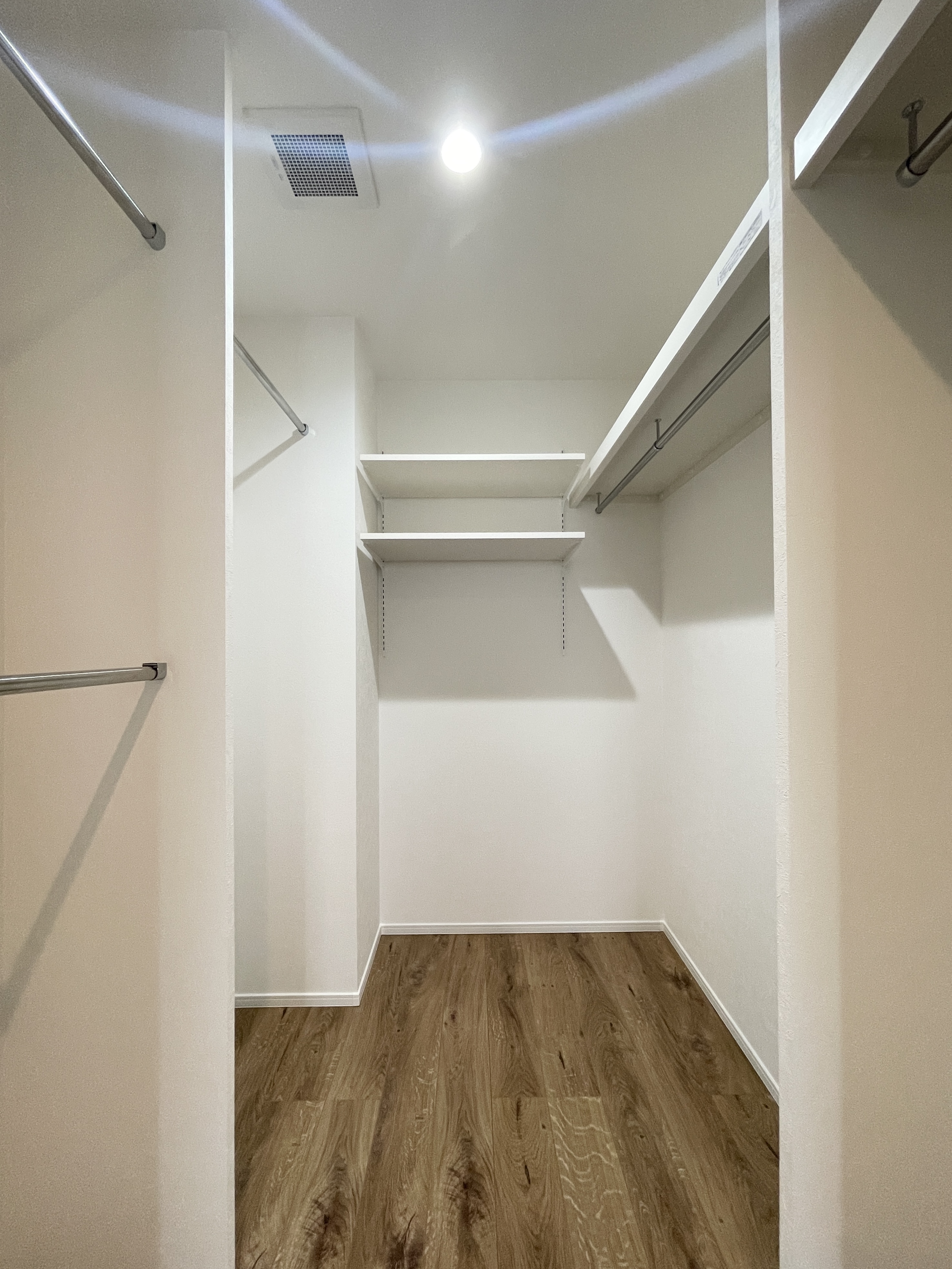 メリットは使用用途がはっきりしているため計画的な収納が可能なことと、洋服以外の収納、納戸の代わりにもなれることです(^^)