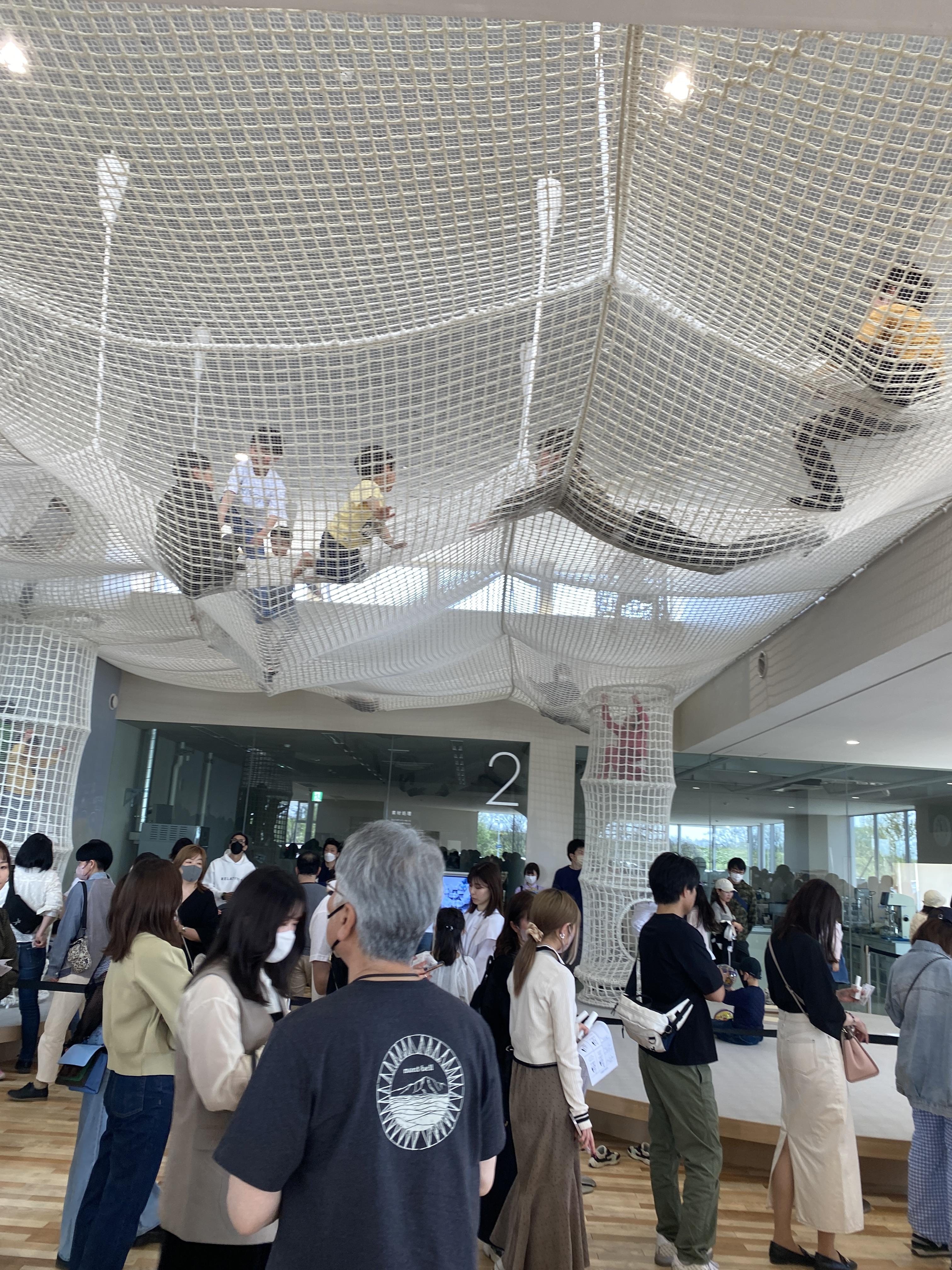 ショップの天井には子供達が遊べるジャングルネットが!