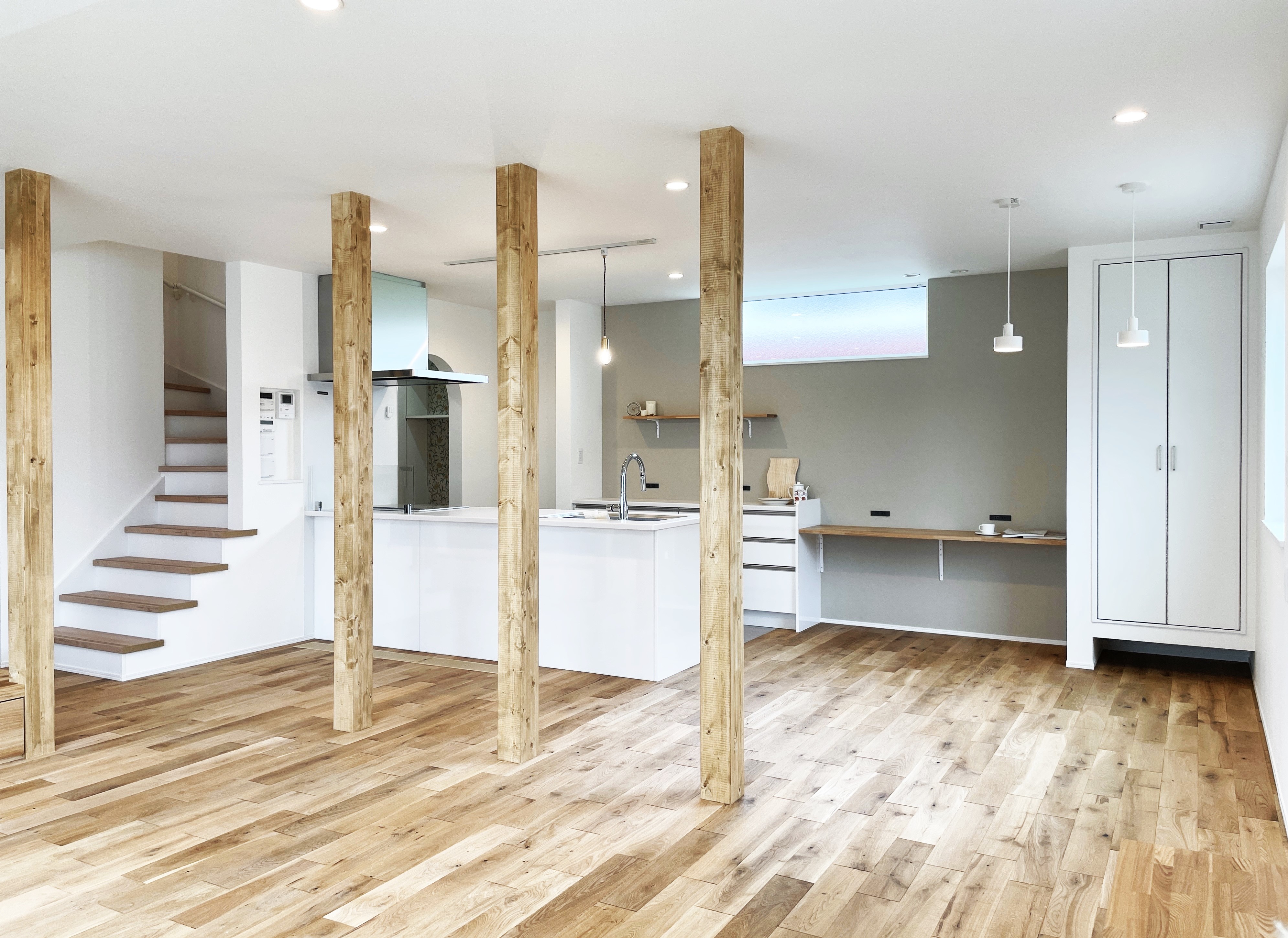 1階の床材は、温かみを感じられる「ナラの木の床」