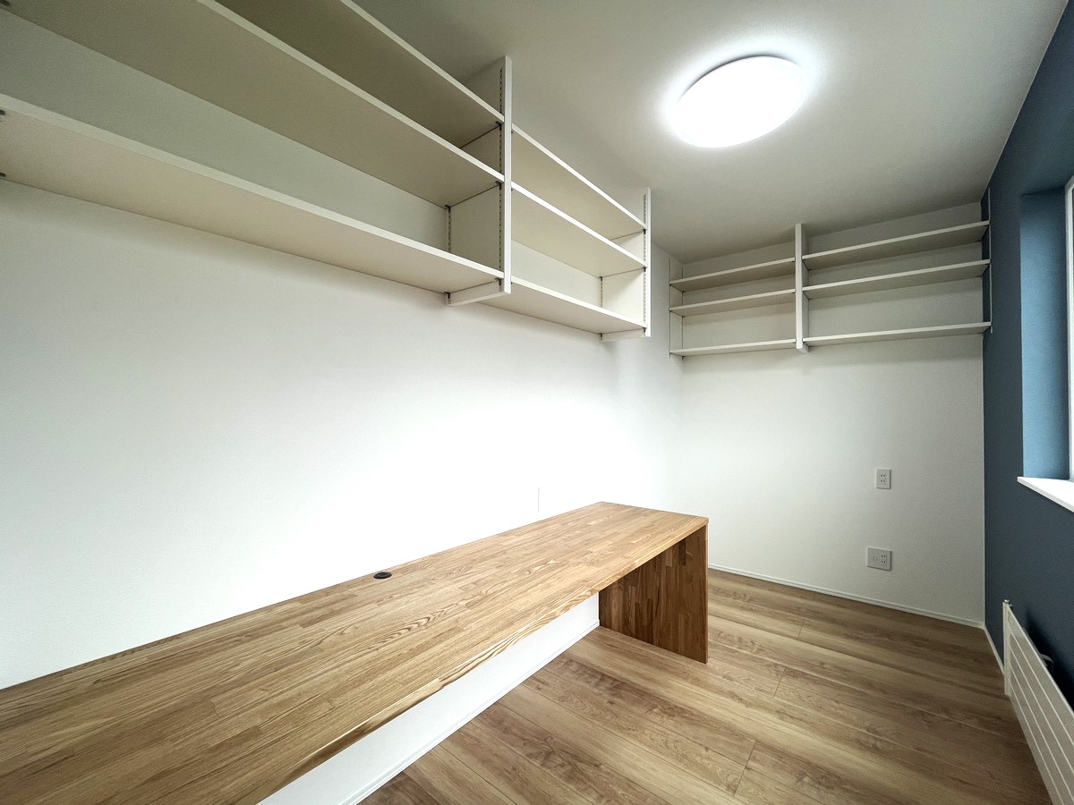 デスクや収納棚もオーダーメイドしているので、作業スペースは