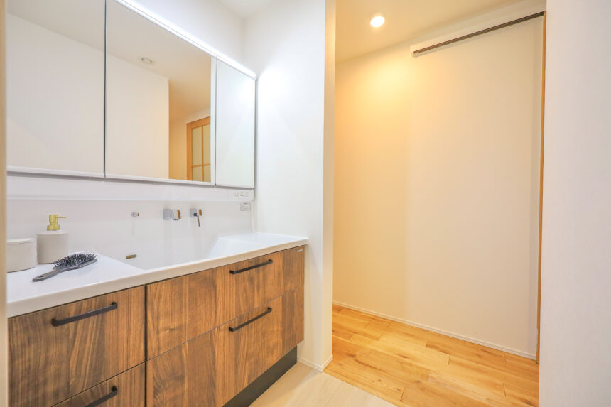 洗面と脱衣室を分けた、プライバシー配慮の水まわり