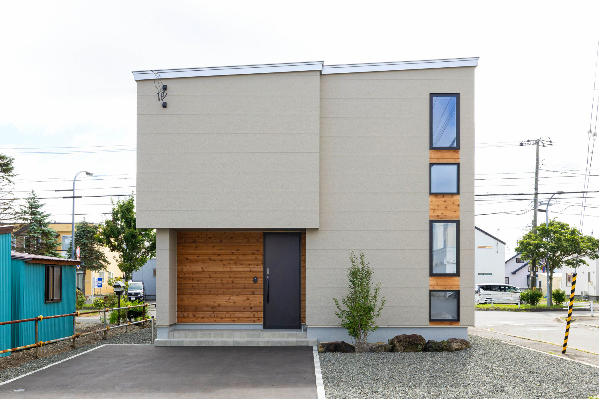 外壁の一部にレッドシダーを採用し、天然木ならではの温もりと質感をプラス。