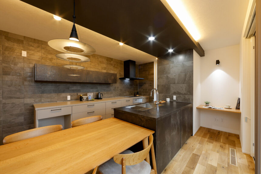 落ち着いたトーンと素材感が調和し、重厚感のある佇まいに仕上がっています。