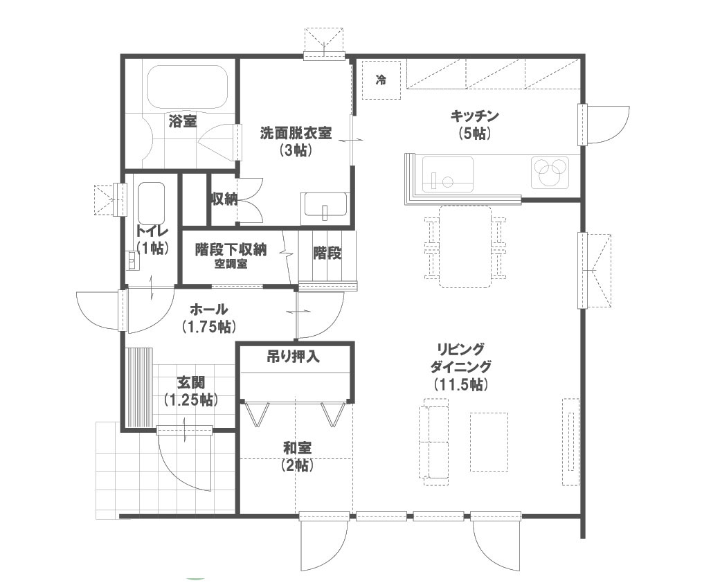 全館空調システム(エアボレー)完備!エアコン一台で、季節を問わずどの部屋でも快適に過ごせます。
