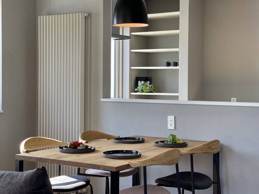 「モルタルグレー」「ブラック」「ダークブラウン」を基調とした、重厚感のあるスタイル。