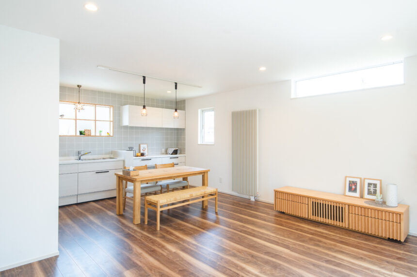 家具もセットで販売中のモデルハウスとなっております。