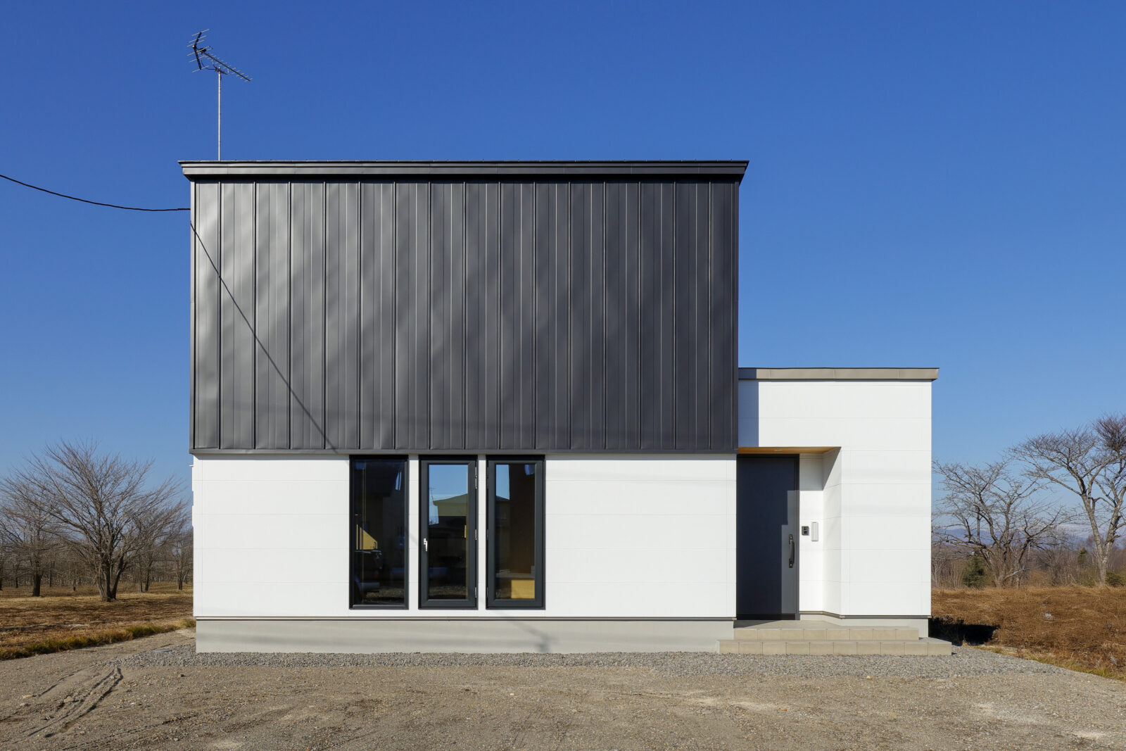 外観は、直線的な美しさが際立つシンプルモダン。板金サイディングにレッドシダーを合わせ、ウッディークラフトらしい温かみをプラスしました。