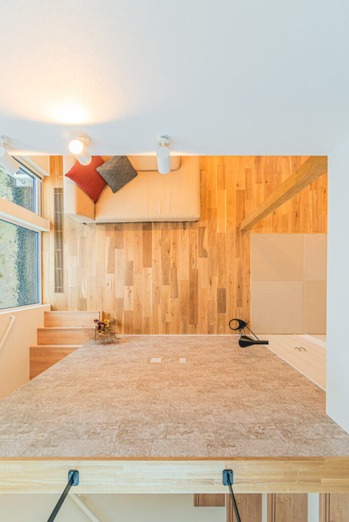 アンティークな仕上がりで、掘りごたつもあるくつろぎ空間です。