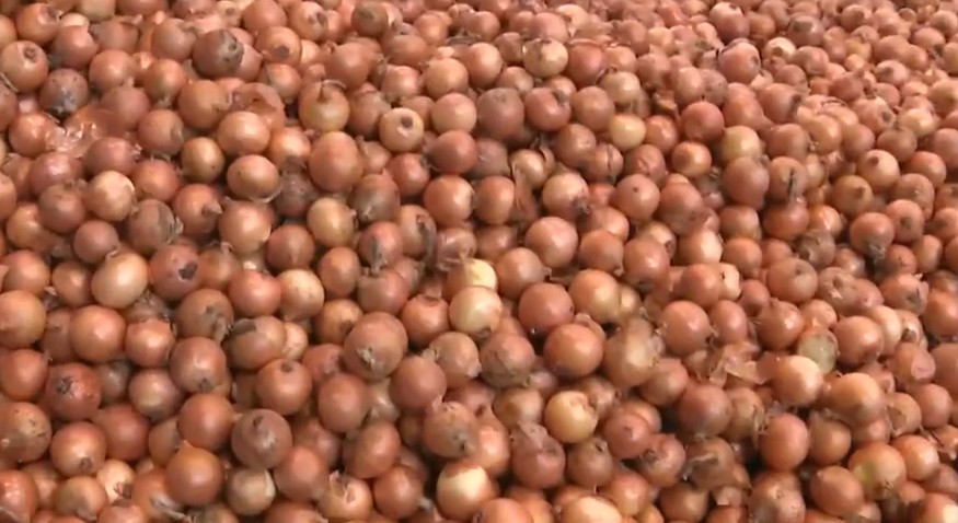 1回100円の玉ねぎ詰め放題は長蛇の列で