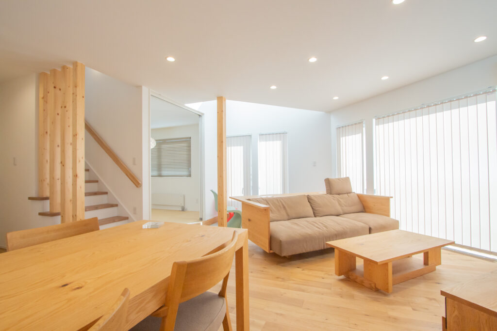 南陽と西陽に直行するリビング。自然の力を利用して快適で豊かに暮らせる家へ
